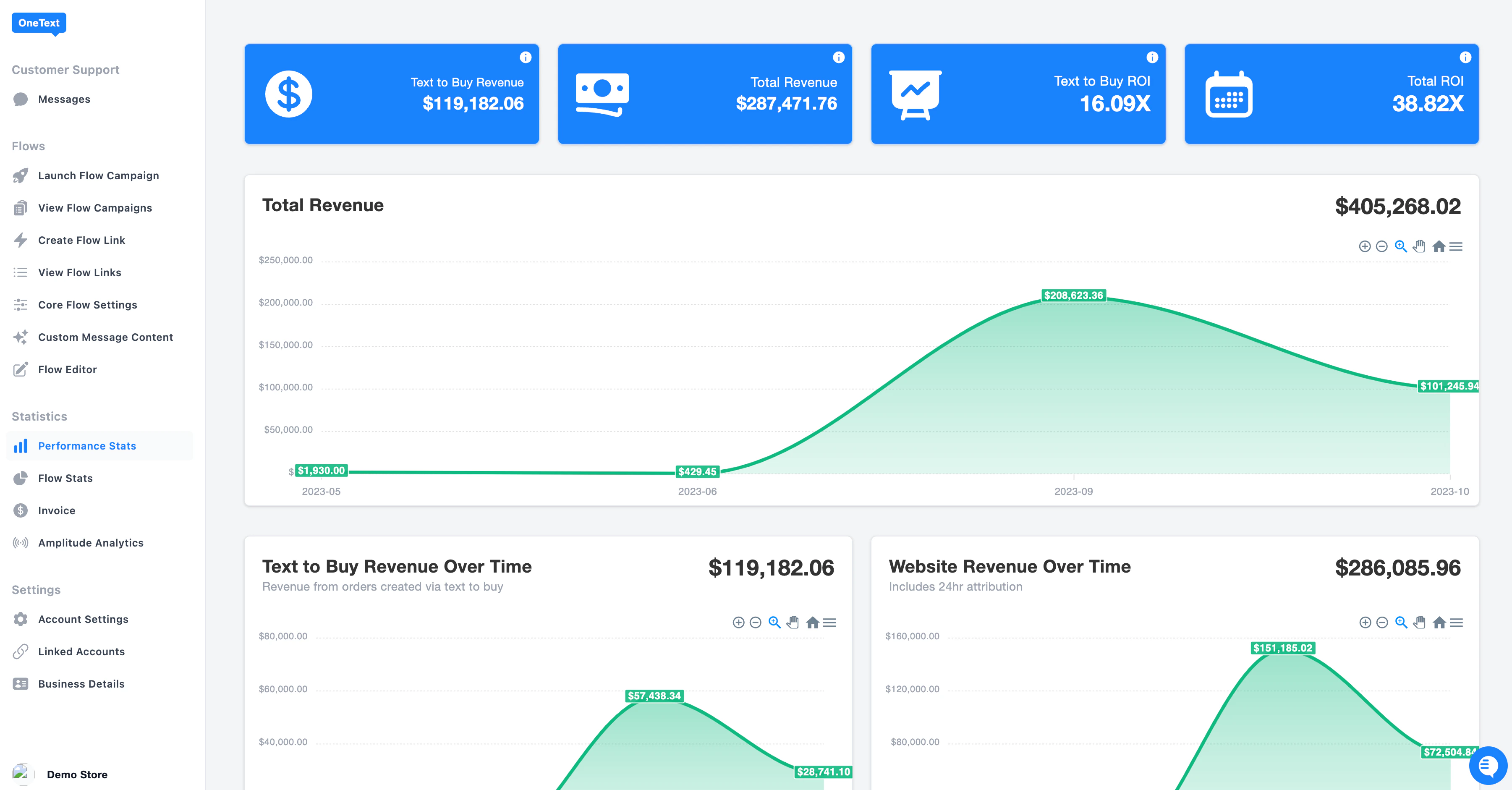 Text to Buy ROI is calculated by dividing the text-to-buy revenue by all fees. Total ROI is calculated by dividing the total revenue by all fees.
