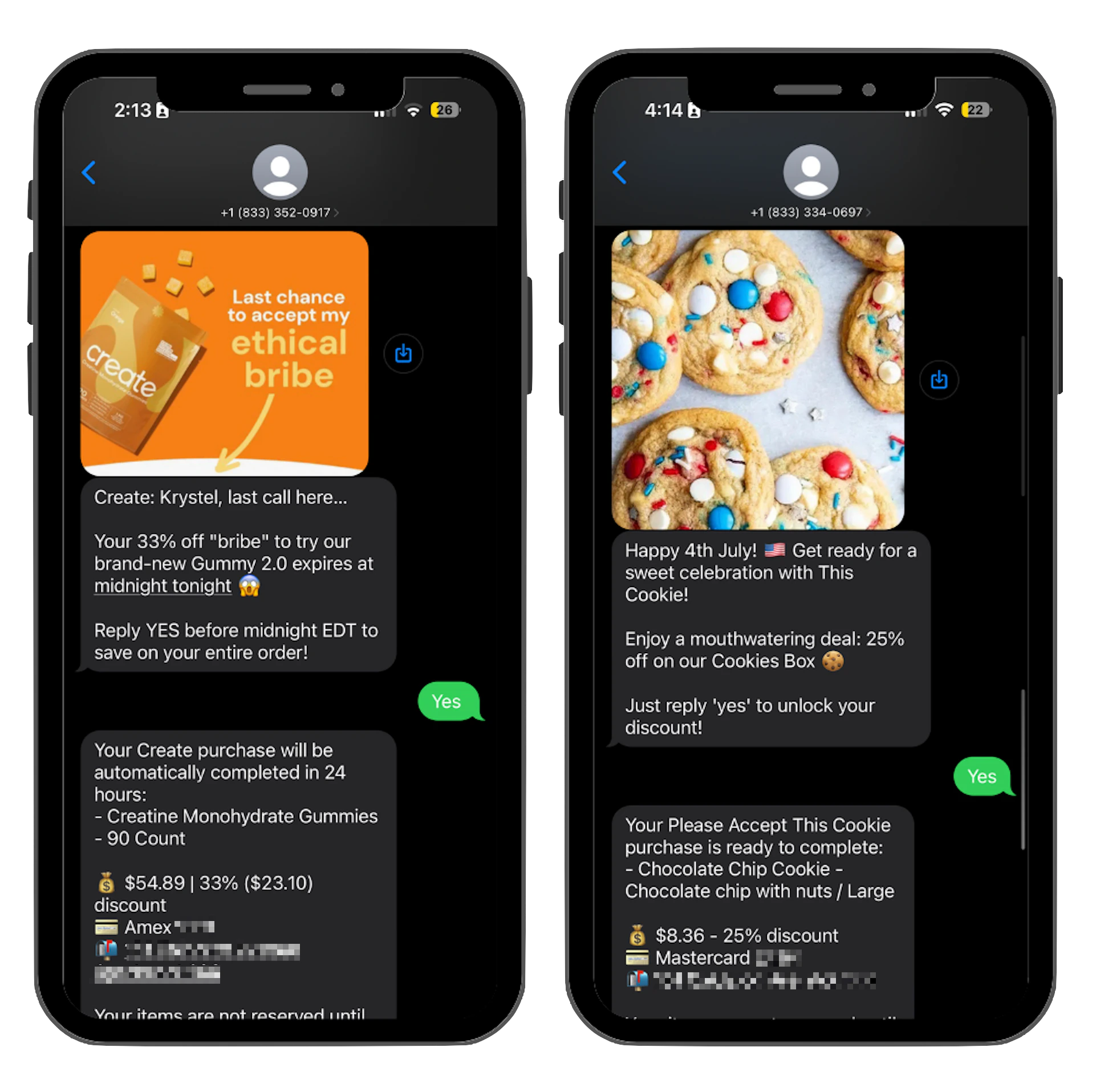 - Your CTA should be concise and compelling, e.g. “Reply YES to buy!” or “Ready to get your discount? Just reply yes and I’ll ring you up.”